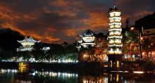 下午安排:乘車赴【芙蓉古鎮(zhèn)】(贈(zèng)送門票、景區(qū)環(huán)保車和酉水畫(huà)廊已含),山水如畫(huà),多情的酉水養(yǎng)育了世世代代的土家兒女,也造就了沿岸動(dòng)人的風(fēng)光,酉水畫(huà)廊納含著芙蓉鎮(zhèn)的草木、山水、人兒,一道道美麗的彩虹是它編織的最美西蘭卡普。這里得酉水舟楫之便,上通川渝,下達(dá)洞庭,素有“楚蜀通津”之稱。因謝晉執(zhí)導(dǎo),劉曉慶、姜文主演的電影《芙蓉鎮(zhèn)》在此取景而出名,于是人們便把此地叫做芙蓉鎮(zhèn)。時(shí)代變遷,歷久彌新,更因其獨(dú)特的原始人文,靜謐山水成為新時(shí)代湖南旅游新寵。芙蓉古鎮(zhèn)大瀑布,酉水碼頭繁華依舊!乘車赴神秘湘西深處鳳凰古城,這里被譽(yù)為遠(yuǎn)去的家園,夢(mèng)中的故鄉(xiāng),邂逅邊城的燈火闌珊,品味獨(dú)特的夢(mèng)里苗疆。游覽被新西蘭著名作家路易艾黎稱贊為中國(guó)最美麗的小城--【鳳凰古城】,體驗(yàn)和感受鳳凰古城的九大精華:一座青山抱古城、一泓沱水繞城過(guò)、一條紅紅石板街、一道風(fēng)雨古城墻、一座雄偉古城樓、一個(gè)美麗彩虹橋、一排小橋吊腳樓、一批聞名世界的人、一個(gè)國(guó)家級(jí)非遺文化遺產(chǎn)!